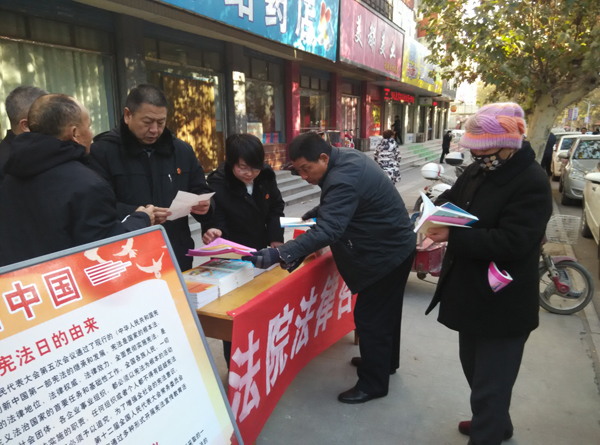 12月4日,是我国第一个全国宪法日,河南省焦作市中站区人民法院党组成员、副院长孙同勇带领业务骨干走上街头,向过往群众宣传宪法知识,解答群众法律疑难问题,为推进辖区建设营造了良好的法治环境。