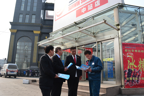 在“3•15”消费者权益保护日到来之际,焦作市中站区人民法院执行法官走上街头,走入商场,向群众发放法律宣传手册,并就群众遇到的消费纠纷开展义务法律咨询,深受群众的好评。图为该院执行法官在辖区某商场门口向群众发放法律宣传手册。
