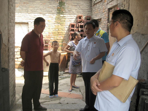 图为8月26日该院一名副院长(中)正在对一起侵权案件进行现场调解。