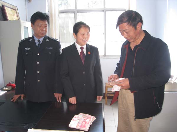 (图为执行人员成功执结某村委会欠款案件为当事人发放执行款的情形。 )