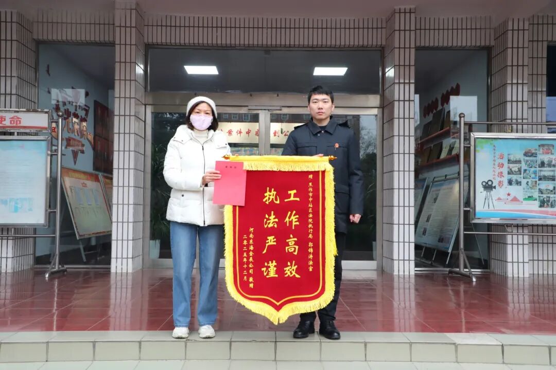 另一面印着“工作高效 执法严谨”的锦旗,来自一起中介合同纠纷执行案。被执行公司未履行判决义务,执行团队迅速响应,通过精准查控、及时扣划,仅用5天便将案款执行到位,并主动协调发放事宜,打通了权益实现的“最后一公里”。“法官不仅办案高效,更实实在在为企业排忧解难!”申请企业负责人送来锦旗与感谢信时的由衷感叹,正是对法院优化营商环境、护航企业发展的最佳褒奖。
