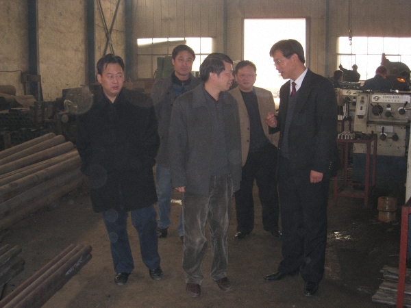 (图为朱战利院长、李红卫庭长一行在董事长崔小怪的陪同下参观企业)