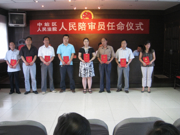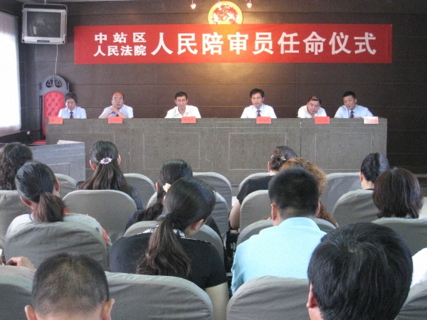 6月8日上午,中站区人民法院隆重举行人民陪审员任命仪式,区人大常委会副主任秦廷德、区司法局副局长冯平定出席了仪式。任命仪式由中站区人民法院副院长郑健普主持。
