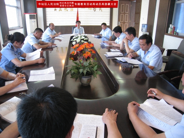 会上,由副院长郑健普宣读了中站区法院《“纠正执法问题 促进公正执法”专题教育活动方案》,对本次活动进行了详细具体的部署。政治处主任于文对本院上半年法官绩效考核情况进行了通报。