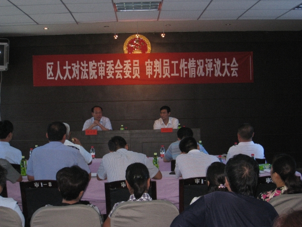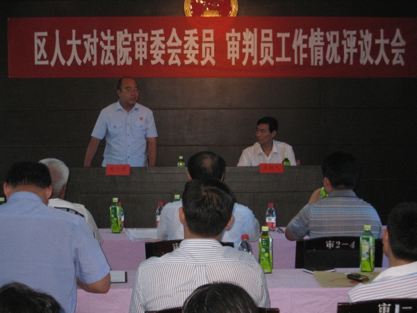 会上,首先由中站区法院朱战利院长就法院执行工作开展情况进行了专题汇报,并结合正在开展的“纠正执法问题,促进公正执法”专题教育活动和案件大评查向评议组作了详细的介绍。随后,评议组采用逐个述职和抽题演讲的形式对各位审委会委员、审判员的履职情况进行公开评议。各位审委会委员、审判员根据自身一年来学习的法律、办理的案件和得来的体会,以及经验教训,结合具体案例详细阐述了“为大局服务、为人民司法”工作主题的实质内涵,展示了“人民法官为人民”的风采。