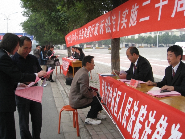 为进一步增进全社会对《中华人民共和国行政诉讼法》的关注,提高广大群众对行政诉讼和行政审判工作的认识和重视程度,纪念《中华人民共和国行政诉讼法》实施20周年,9月29日上午,焦作市中站区人民法院在辖区许衡广场上开展了《行政诉讼法》宣传活动。活动中,行政审判庭的法官们为群众分发“行政诉讼指南”等宣传材料,耐心讲解“民能不能告官,民如何告官,民怎么告赢官”等群众关心的现实问题,并通过现场举例等方式深入浅出的为老百姓做形象生动的宣传。