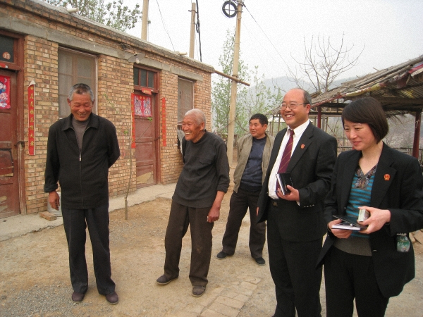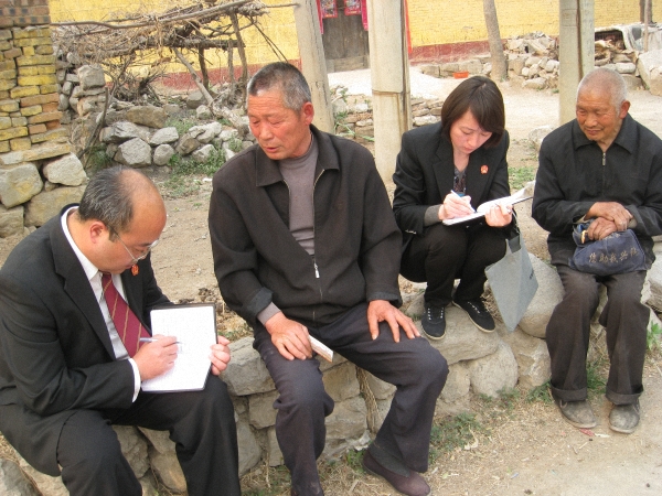 为深入开展爱民进万家大走访活动,焦作市中站区法院制定了由院领导带队、全员参与、分片包干的走访方针与目标计划,区法院领导先后走访了区内各行政村及部分社区,初步掌握村情村貌,及时了解村民的司法需求,耐心倾听村民对法院工作的要求和建议,做到问需于民、问计于民。此外,还向村民宣讲法律知识和诉讼程序、发放了诉讼指引等相关法律宣传资料,以增进村民对法院工作的了解,让群众真切了解司法,推动司法与群众零距离、面对面、心贴心。图为该院党组成员、副院长郑健普带领干警在包干的龙洞办事处许河村进行走访。