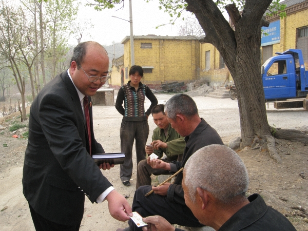 郑健普副院长向群众发放联系卡片,方便群众咨询法律业务。