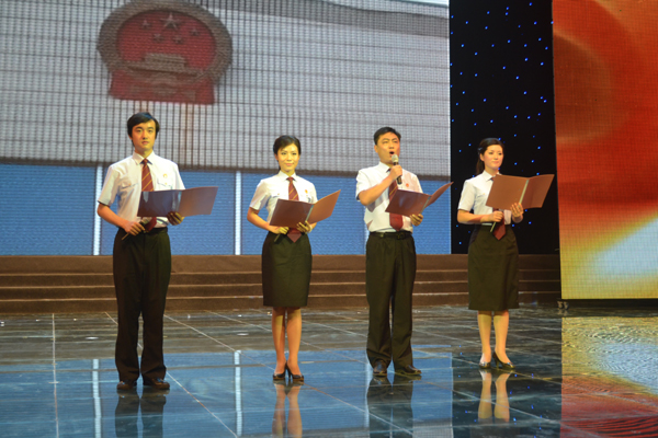 6月21日下午16时,“天平颂”——焦作市法院系统纪念中国共产党成立90周年大型文艺汇演在焦作市广电大厦1号演播厅隆重举行,由中站区人民法院选送的诗朗诵《法官之歌》以新颖的形式、磅礴的气势、深情的表演赢得了与会观众和领导的一致好评。
