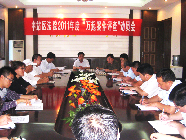 9月5日下午,焦作中院2011年“万起案件” 评查组一行7人,在焦作中院专职审委会委员古海林带领下来到中站区法院,标志着该院“万起案件”评查活动正式开始。为确保活动取得成效,中站区法院专门召开了2011年“万起案件” 评查活动动员会,古海林专委出席会议并作重要讲话,评查组成员、中站法院党组成员和全体业务庭干警参加会议,会议由中站区法院党组书记、院长朱战利主持。