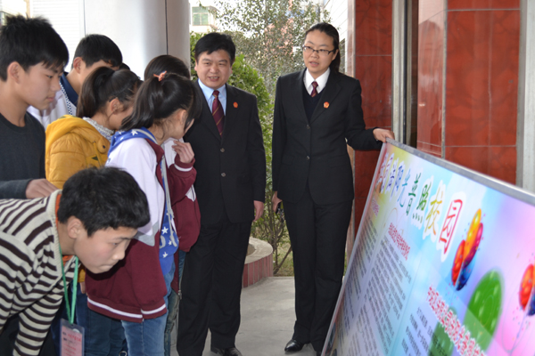 为了增强内未成年人的法律意识,提高学生法律素质,配合全省法院“一校一法官”活动的开展,2013年4月,河南省焦作市中站区人民法院党组成员、副院长孙同勇、史文辉和办案经验丰富的干警组成法制讲师团走进辖区内各中小学,以普法讲座,法制座谈会,设置普法展板等方式与同学们近距离交流日常法律知识。