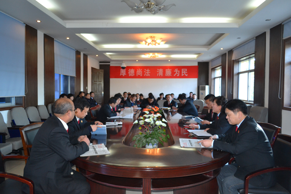 院长原大峰强调,《中共中央关于全面深化改革若干重大问题的决定》是我们党在新的历史起点上全面深化改革的科学指南和行动纲领,深刻阐明了全面深化改革的重大意义和未来走向,提升了全面深化改革的指导思想、目标任务、重大原则,描绘了全面深化改革的新蓝图、新目标,汇集了全面深化改革的新思想、新论断、新举措,是国家未来改革发展中纲领性文件,具有重要的指导意义,为今后法院司法改革明确了目标,指明了方向。全体干警要用十八届三中全会的精神武装头脑,切实将学习成果转化为司法为民的强大动力,积极创新能动司法方式,依法独立公正行使审判权,自觉接受法律监督和社会监督,为“建设西部工业城、打造北部后花园、构建和谐新中站”提供强有力的司法保障。