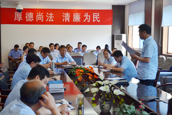 会上,专职审委会委员白立新对审判工作的质量和效率以及司法公开年活动情况进行了专门汇报。副院长郑健普就信息调研集中竞赛活动提出了一些意见及建议。最后院长原大峰对会议进行了总结: