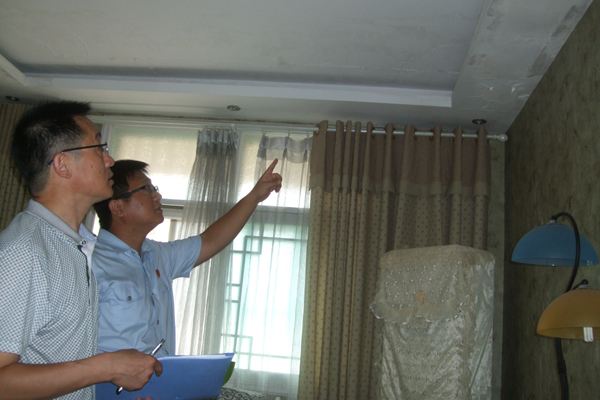 图为8月14日,我院邀请人民陪审员对一起因漏水引发房屋损害赔偿案件鉴定进行现场监督。